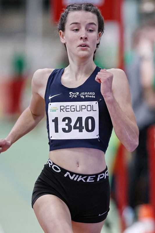 Den Titel im 800-m-Lauf der W15 sicherte sich erwartungsgemäß Jarla Schlütter, die in einer neuen persönlichen Hallenbestzeit von 2:22,80 Minuten über eine Sekunde vor der Konkurrenz ins Ziel kam. Anschließend berichtete sie, dass ihr in der dritten Runde doch etwas die Beine schwer wurden und es wohl einfacher aussah als es war. Auch ihre Trainingspartnerin Sophie-Maria Wölk lief bei der W14 in 2:25,23 Minuten eine neue persönliche Bestzeit. Hinter der Favoritin Emma Schild (Duisburg) sicherte sich Wölk wie im Vorjahr die Silbermedaille.